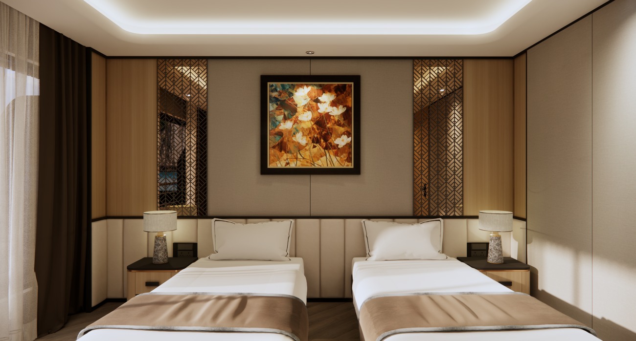 Imperial Suite is the most luxurious room class on Azura cruise. The 66m² space is imbued with luxury and class, reflecting the sophisticated taste and status of the guests experiencing it. The Imperial class is equipped with a private sauna, a bathtub with a spacious balcony, perfect for guests to relax in a private space, immersing themselves in the magnificent natural scenery. Every detail in the IMPERIAL SUITE is meticulously designed to bring a perfect resort experience, worthy of class. This will definitely be the ideal accommodation space for those who seek difference and sophistication in every experience.