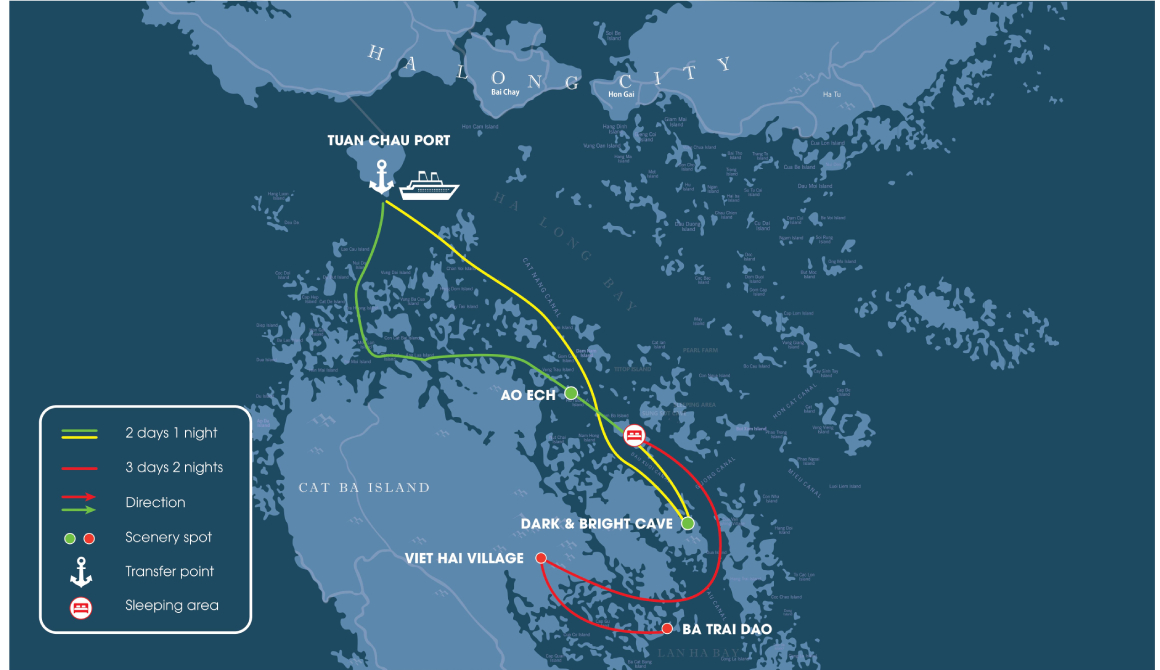 • The itinerary may change without prior notice due to weather conditions, tides or notices from the Halong Bay & Lan Ha Bay Management Board.
