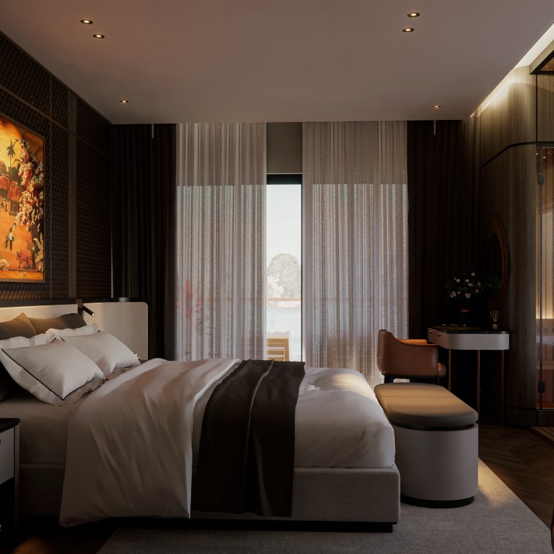 Deluxe Sea View Cabin là lựa chọn hoàn hảo cho những ai mong muốn một không gian nghỉ ngơi ấm cúng, yên tĩnh và tiện nghi. Từ ô cửa sổ lớn, du khách có thể chiêm ngưỡng khung cảnh Vịnh Hạ Long thơ mộng, lắng nghe tiếng sóng vỗ và tận hưởng không khí trong lành giữa đại dương bao la.