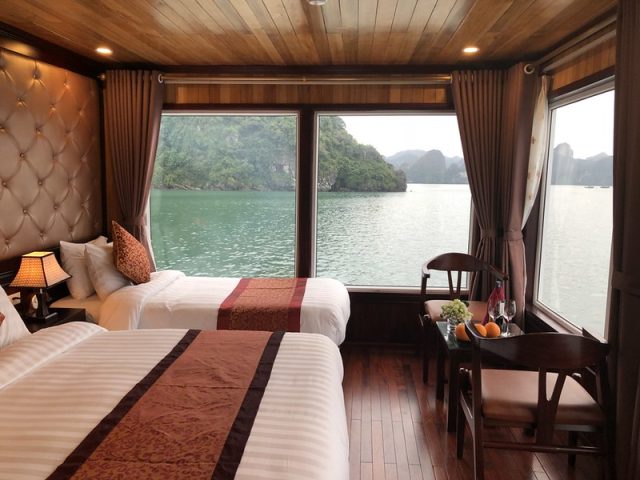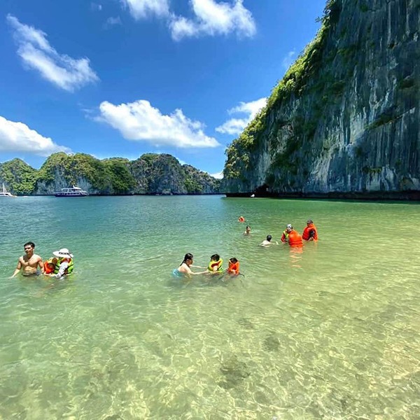 ” Đây là lần đầu tiên mình đi du thuyền ở Hạ Long. Phong cảnh đẹp, chỗ ở thoải mái, nhân viên thân thiện, đồ ăn khá là ngon, rất vui vẻ, mình đi gia đình 10 người có trẻ em chơi rất vui. Trải nghiệm đáng để bỏ tiền ra.”